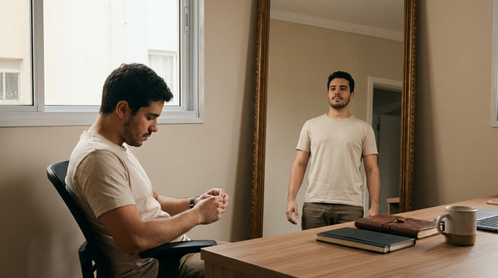 O problema é que essa “postura de defesa” não fica só no corpo. Ela costuma puxar um pacote completo: autocrítica, medo de julgamento, procrastinação, vontade de evitar conversa difícil (com o chefe, com o parceiro, com o banco, com você).